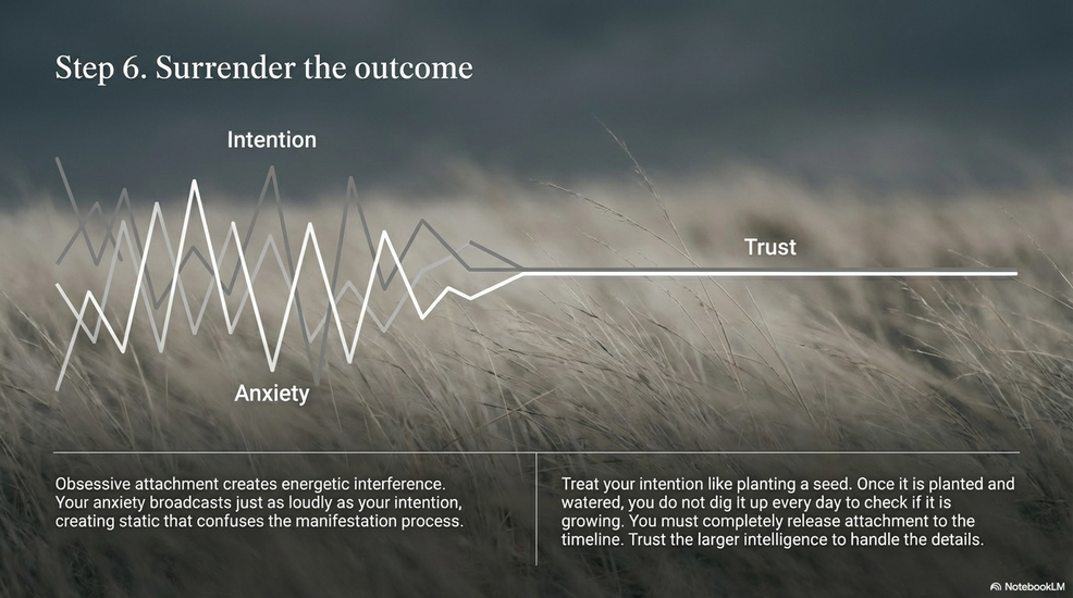 Think of it like planting a seed. Once you've planted it, watered it, and ensured it has sunlight, you don't dig it up every day to check if it's growing. You trust the process. You might water it regularly (which corresponds to taking aligned actions in the physical world), but you don't anxiously hover over it.