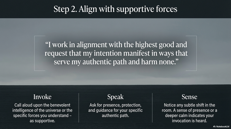 Feel into whether you sense a response. You might feel a subtle shift in the energy of the room, a sense of presence, or simply a deeper calm. If you feel nothing immediately, that's also fine. Trust that your invocation has been heard.